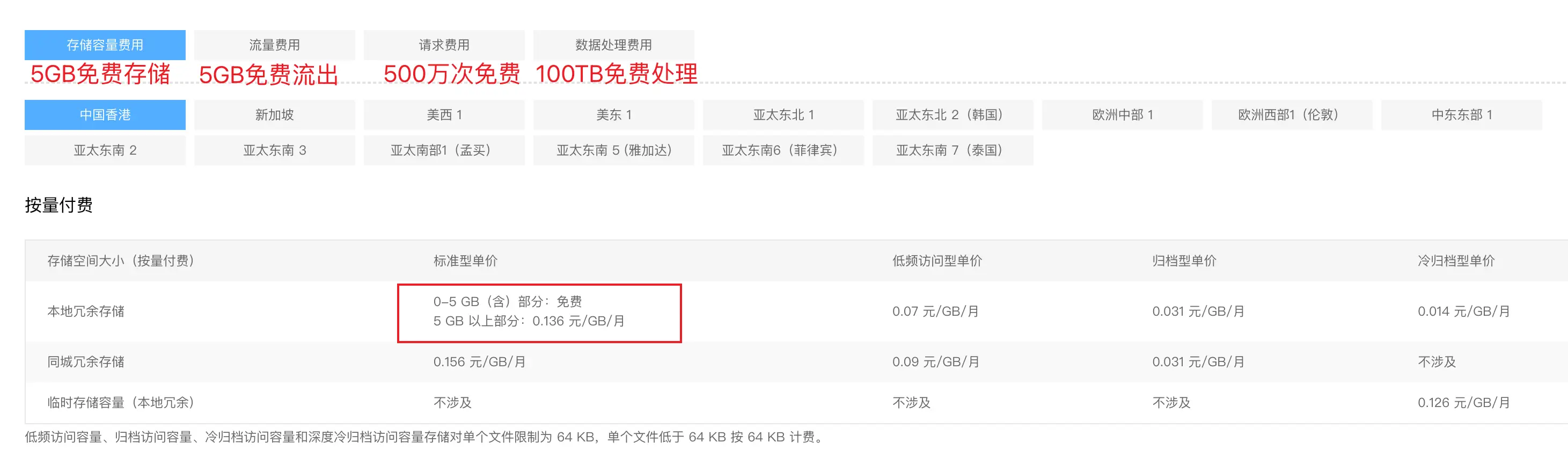 中国香港&海外地区包括:中国香港、新加坡、亚太东北 1(东京)、美西 1(硅谷)、美东 1(弗吉尼亚)等地域。各地域的资源单价有所不同。