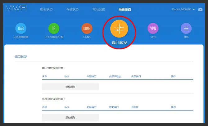 例如小米的路由就在这个页面: